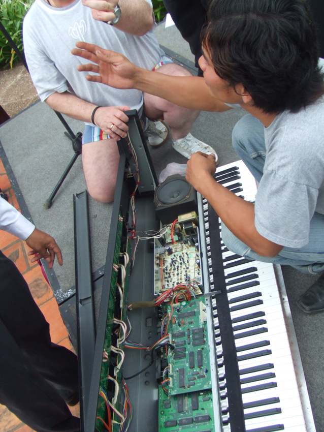 午後は夜のコンサートの準備、リハーサルのはずが、ほとんどピアノの修理で終わりました。フランス人のパトリックさん、ピアノの修理もバッチリ、ねじが少し余りました。