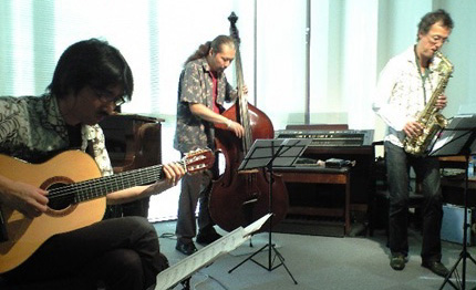 いにしえのトリオ、三四朗(サックス)、村井秀清(ピアノ)、新岡誠(ベース)