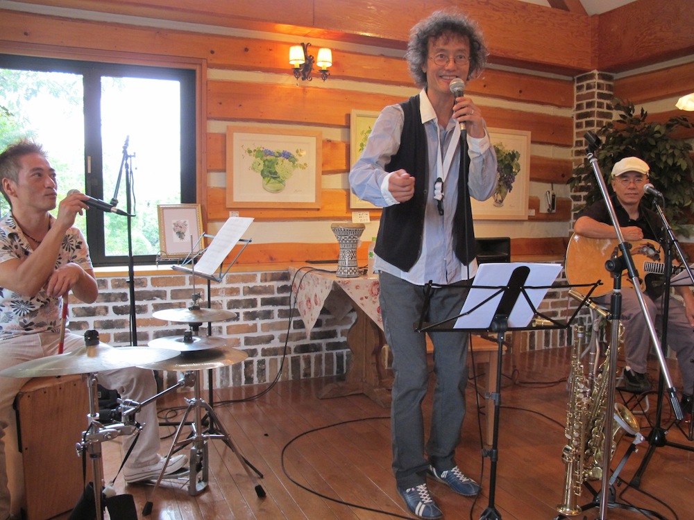 さて、オリーブバールは、かよこさんと純さんのお城。ちょっとお邪魔のつもりが、かなりヒートアップ。ここも天井が高くて、音が綺麗にのびるので、本能が押さえられません。鳴り止まぬアンコールに、夜は深まって行きました。