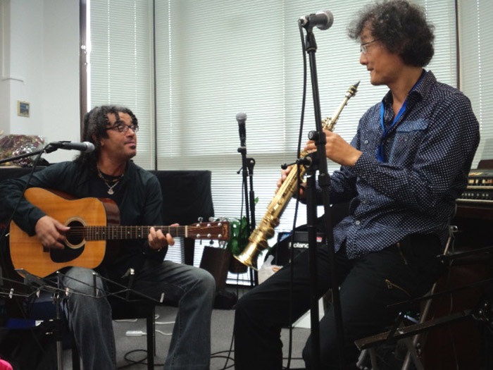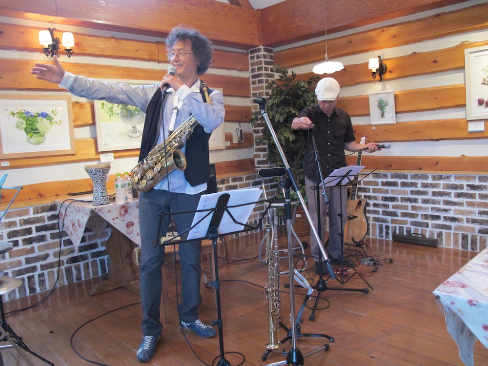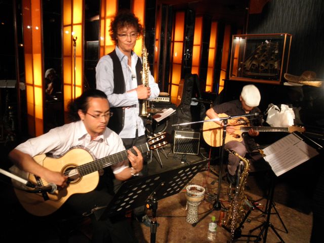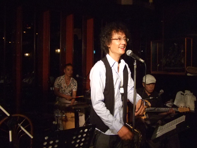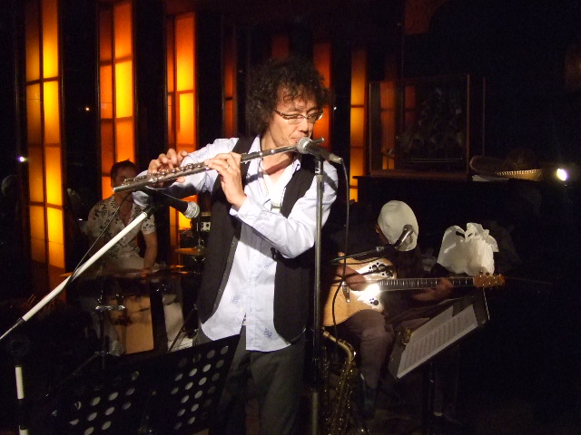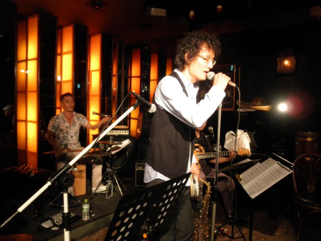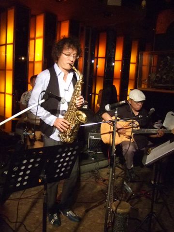 このお店は、ステージの床が大理石。あとはアンティークなイギリス風。不思議な反響があるので、サックスの演奏に注意が必要です。ギターとのバランスを取りながら、出たり引っ込んだり。でもハンディーがある方が、表現が豊かになるようです。