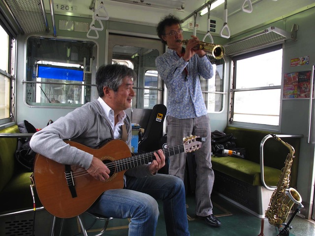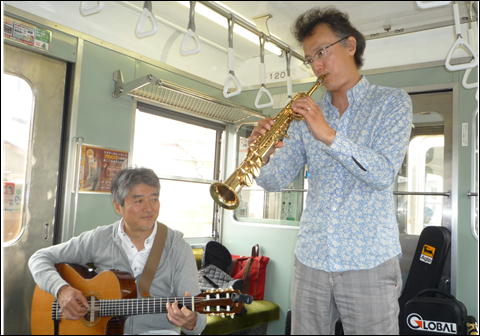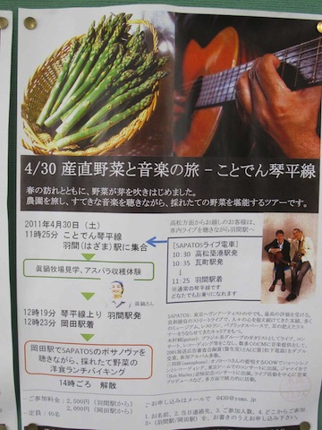 電車内ライブ、アスパラ農家見学、ランチビュッフェ、デザート演奏。